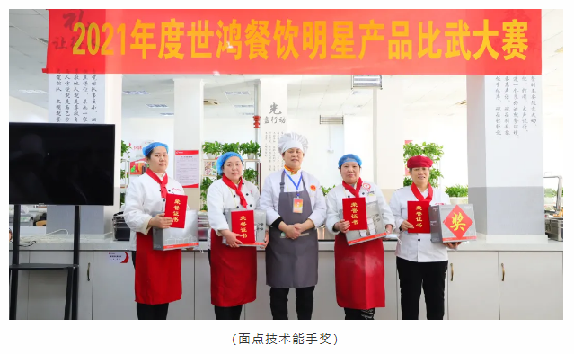 厨艺比赛分为热菜组和面点组两项比赛,每位选手都是精心准备、认真制作,激烈对决,缤纷呈现,将这一年的努力付出和用心态度都带入参赛作品中。经过评委们严谨认真的评审后最终评选出热菜组和面点组的前三名和技术能手奖。颁奖环节是最令人激动的环节,每一位获奖者由颁奖嘉宾用鲜花邀请至主席台,现场尽是大家热情的祝贺和掌声,充满仪式感的颁奖环节令世鸿的家人们开心而感动。大赛是对各项目厨艺基本功的检验,同时利用这个平台可以使大家相互取长补短,厨艺技能得以提升。新的一年,九游将紧跟时代步伐,不断推陈出新。做高品质团餐,更好的服务于社会。
